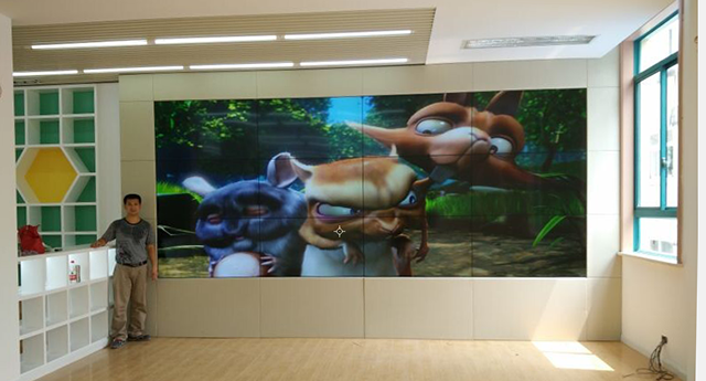 上海虹口區(qū)幸福四平小學多功能廳的電子屏幕墻,采用的是雅迅達公司的55寸超窄邊液晶拼接屏,該屏的拼接縫隙更是達到了極小的3.5mm。根據該學校對屏幕規(guī)格的需求,我們通過3*4的拼接方式來展示出整體的拼接效果。