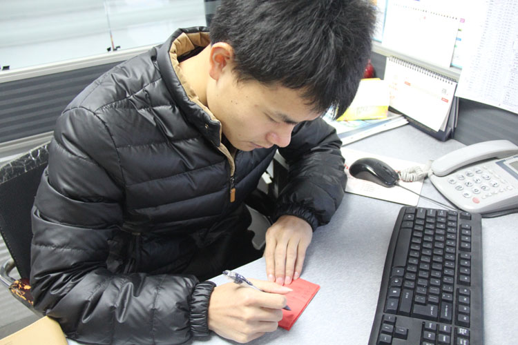 一位公司資深高級客服小歐陽,集智慧與美貌于一身。5年,她將這一段最美好的青春揮灑在雅迅達。在新春來臨之際,寫下了她對2016年滿滿的祝福。這一個祝福,她足足寫了10分鐘,不時咬筆思考,不時筆尖飛揚,生怕漏掉任何一個祝福的機會,這樣的女孩用“萌萌噠”來形容,再合適不過。