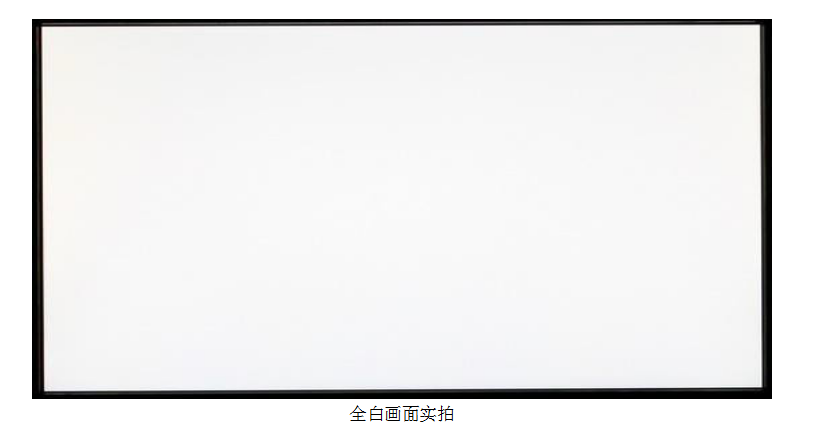 在面板均勻性方面,具體情況可以參看兩種狀態(tài)下實(shí)拍圖片,全黑狀態(tài)下屏幕漏光很小,表現(xiàn)十 分不錯(cuò)。全白狀態(tài)邊角區(qū)域亮度略低,不過整體來說已經(jīng)不錯(cuò)了。