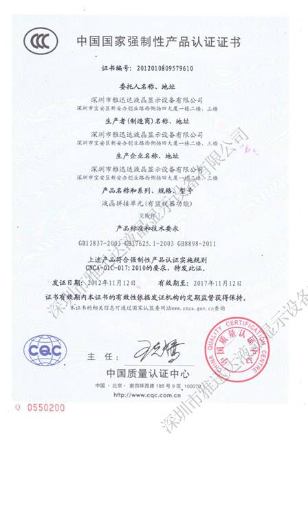 迎接新標準,挑戰(zhàn)新高度一直是雅迅達人不解追求。以精益求精的心態(tài),面對我們的新國標。雅迅達人用第一時間開發(fā)出通過新標準認證的產(chǎn)品,向行業(yè)證明,向廣大的監(jiān)視顯示器客戶證明——雅迅達人的追求。做監(jiān)視器行業(yè)的先行者。
