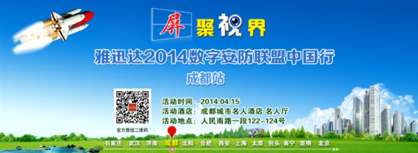 “屏聚視界——雅迅達2014數(shù)字安防聯(lián)盟中國行”成都站活動將于明日(4月15日)在成都城市名人酒店拉開序幕。本次活動由深圳市雅迅達液晶顯示設(shè)備有限公司獨家冠名,慧聰安防網(wǎng)承辦,深圳市佳信捷技術(shù)股份有限公司、廣東鉑亞信息技術(shù)股份有限公司、珠海市太川電子企業(yè)有限公司聯(lián)合協(xié)辦。四川省公安廳科技信息化辦公司副主任葛城先生、中國科學院成都計算機應(yīng)用研究所總工程師研究員張炳泉教授等領(lǐng)導、專家將出席本次活動。
