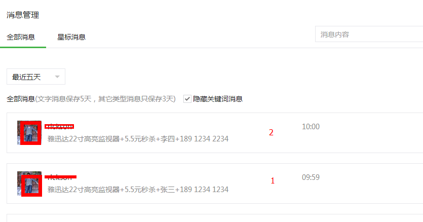 從秒殺時間開始(10點50分),成功發(fā)送活動規(guī)定文字到后臺“消息管理”的前十名參與人員,確認為本次秒殺活動的幸運兒。