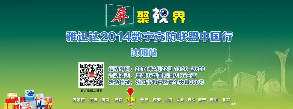 共行安防路 雅迅達(dá)2014中國(guó)行沈陽站明日開幕   繼本月15日雅迅達(dá)數(shù)字安防聯(lián)盟中國(guó)行在成都完美收官之后,雅迅達(dá)繼續(xù)挺進(jìn),將于4月22日(明日)沈陽皇朝萬鑫國(guó)際酒店開啟沈陽站活動(dòng)。