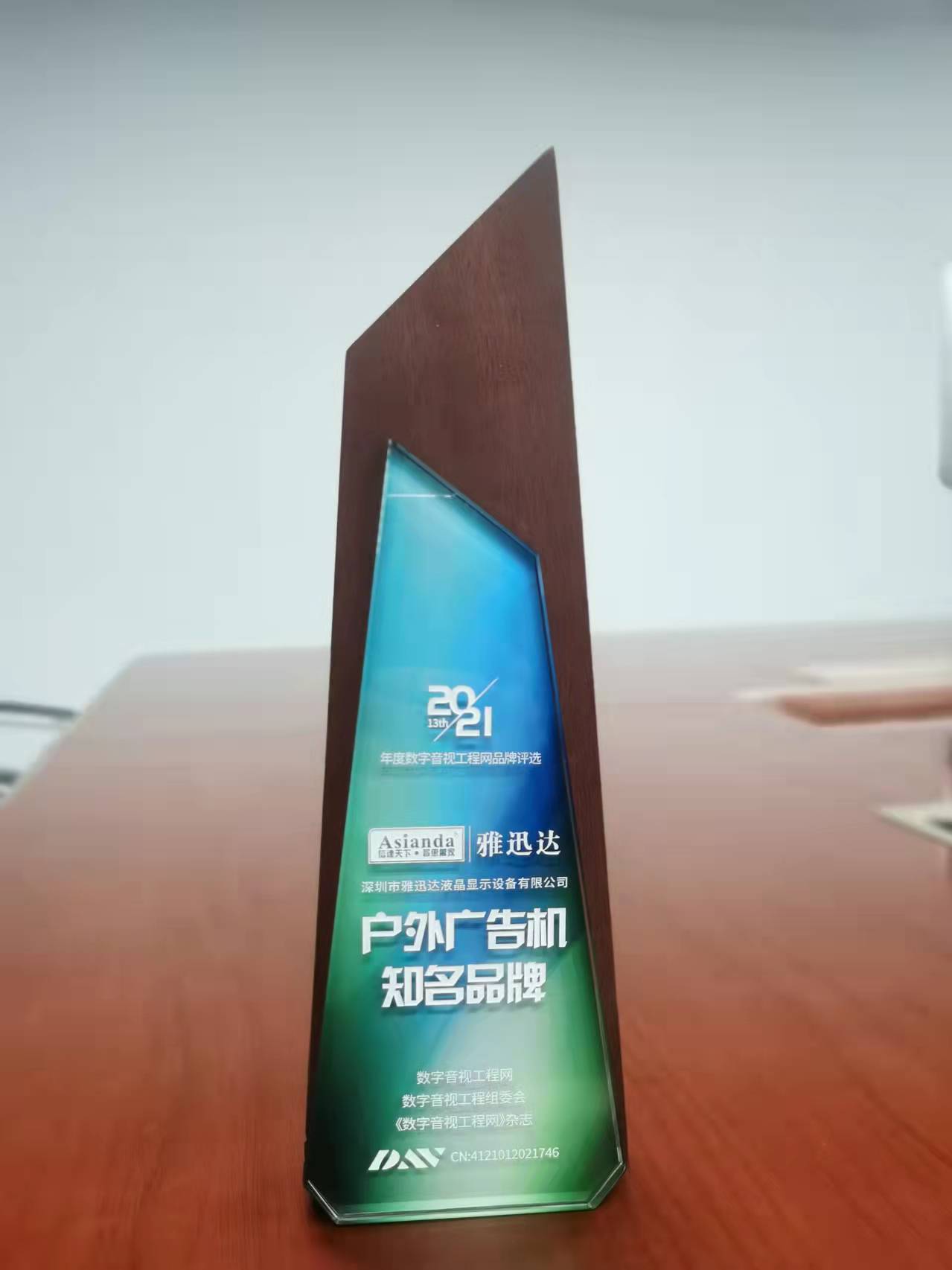 喜報(bào)|雅迅達(dá)榮獲2021年度戶(hù)外廣告機(jī)知名品牌 近日,深圳市雅迅達(dá)液晶顯示設(shè)備有限公司獲數(shù)字音視工程網(wǎng)評(píng)選為“2021年度戶(hù)外廣告機(jī)知名品牌”。