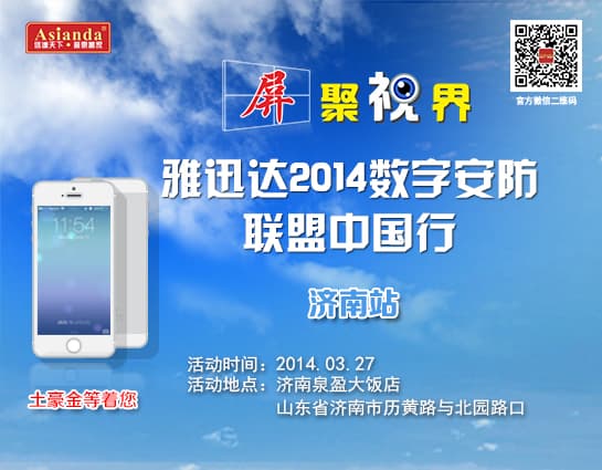 雅迅達(dá)2014數(shù)字安防聯(lián)盟中國行武漢行動在即 “屏聚視界——雅迅達(dá)雅迅達(dá)2014數(shù)字安防聯(lián)盟中國行”繼3月20日石家莊站活動完美收官,將于3月24日在武漢再次舉辦!