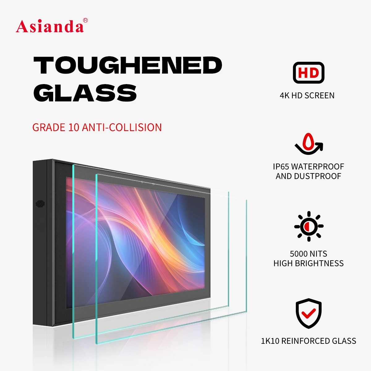 防護等級: IP55/IP65,防水,防暴,防塵,全天候使用。 前維護結(jié)構(gòu)設(shè)計,維護更方便。 納米隔熱玻璃,智能溫控散熱/加熱系統(tǒng),保證機器在最佳的環(huán)境下穩(wěn)定工作。 陽光下可視: 高亮度,高清晰顯示屏顯示畫面。 戶外防暴: 全金屬外殼,強化防爆鋼化玻璃設(shè)計,防爆,防盜。 光感自動控制: 屏幕亮度根據(jù)周圍環(huán)境自動調(diào)節(jié),節(jié)能省電。 |