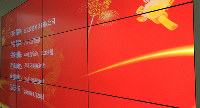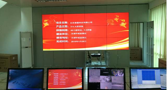 該液晶拼接墻的是采用的46寸的液晶拼接屏,拼縫是5.3mm.該高清拼接墻主要用于環(huán)境監(jiān)測。