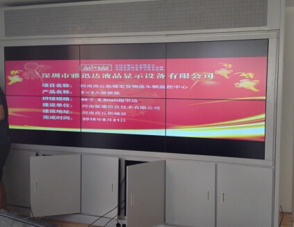 河南商丘柘城縣宏發(fā)物流公司同樣為了此種需求,通過在總部布置雅迅達(dá)液晶拼接屏構(gòu)成的監(jiān)控系統(tǒng),對公司物流車輛的車載GPS進(jìn)行進(jìn)行監(jiān)控。宏發(fā)物流這次使用的是型號為 PJ-B461P-6F的第四代46寸窄邊液晶拼接屏,采用2x3的拼接方式組成拼接墻。產(chǎn)品具有無線操控功能,實現(xiàn)多臺電腦控制大屏終端,并有環(huán)境亮度智能補償功能,實現(xiàn)背光亮度自動調(diào)節(jié)。該型號的液晶拼接屏的特性與功能滿足了用戶的需求,使公司能夠更好的調(diào)控運營。