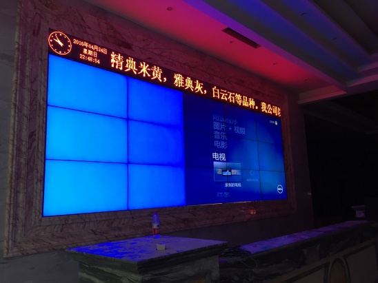 2016年4月23日,在廣州某智能科技有限公司所在單位分部安順市丁旗鎮(zhèn)工業(yè)園安裝的3×5液晶拼接屏采用了雅迅達55寸超窄邊液晶拼接單元,運用了3×5共15塊,搭配了多屏處理器高清顯示設備??梢詫崿F(xiàn)多畫面同時顯示,并且可以實現(xiàn)自由開窗,監(jiān)視窗的窗口大小可以自由調控、位置可以隨時挪動,可以隨時切換信號源。是一種非常靈活的顯示方案,對于多監(jiān)控、多功能的公司顯示系統(tǒng),這個使用非常合理。