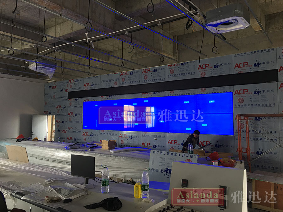 49寸3.5拼縫3x3 拼接屏 該項目位于,上海市崇明區(qū)新河鎮(zhèn)有機物循環(huán)利用中心,采用49寸3.5拼縫3x3