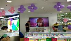 南京OPPO手機專賣店拼接廣告機 該工程使用的是5.3拼逢46寸低亮2*2的液晶拼接屏,采用木板墻凹槽配掛臂支架安裝...