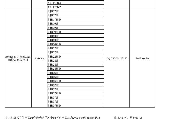 恭賀雅迅達(dá)液晶顯示設(shè)備產(chǎn)品入選<<第二十二期節(jié)能產(chǎn)品政府采購(gòu)清單>>