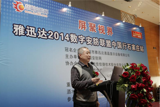 本次活動大概分為四個環(huán)節(jié):冠名企業(yè)雅迅達(dá)新技術(shù)發(fā)布,融合共贏-安防企業(yè)未來發(fā)展之路高峰論壇,協(xié)辦企業(yè)佳信捷、國祥安、優(yōu)特普產(chǎn)品技術(shù)講解,交流晚宴。20日下午2點(diǎn)半,中國行石家莊活動正式開啟,中國傳媒大學(xué)楊磊教授作為嘉賓致辭拉開了會議的序幕。楊教授說道:“今天,我們安防市場的競爭已經(jīng)日趨激烈,更多企業(yè)面臨著不同的發(fā)展疑問,如何在競爭中脫穎而出?而今數(shù)字安防聯(lián)盟的資源整合,服務(wù)融合,為企業(yè)間搭建溝通橋梁,成為我們2014年必走之路?!?/span>