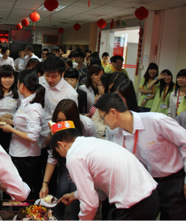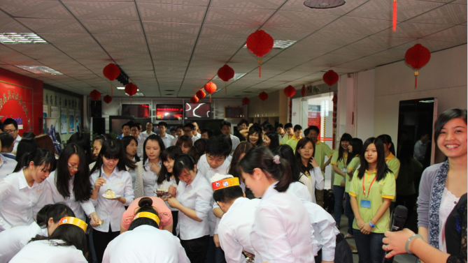 與今日在成都舉辦的雅迅達(dá)中國(guó)行活動(dòng)遙相呼應(yīng),雅迅達(dá)深圳總部也喜氣洋洋——全體近百號(hào)員工齊聚一堂,為4月份生日員工過(guò)集體生日,其樂(lè)融融。