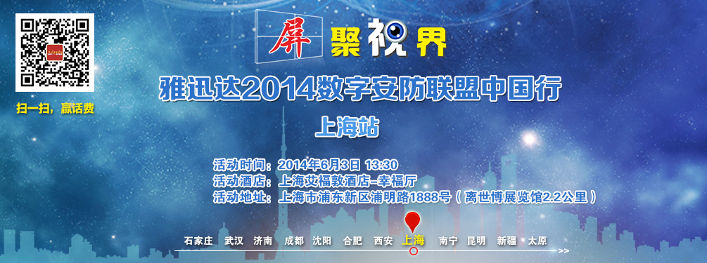 “屏聚視界——雅迅達(dá)2014數(shù)字安防聯(lián)盟中國行”上海站活動預(yù)告信息: