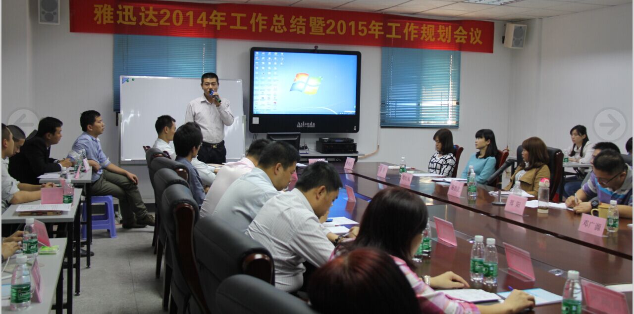 在即將告別2014年之際,11月20日至22日,深圳市雅迅達(dá)液晶顯示設(shè)備有限公司召集各大業(yè)務(wù)戰(zhàn)區(qū)的銷售“將士”齊聚總部進(jìn)行了為期三天的年度總結(jié)和規(guī)劃會議,共同就2014年的市場現(xiàn)狀、營銷策略、產(chǎn)品規(guī)劃等方面的情況進(jìn)行深入剖析,認(rèn)真總結(jié)、查找不足,并針對2015年度公司總體方向進(jìn)行了具有建設(shè)性的規(guī)劃。