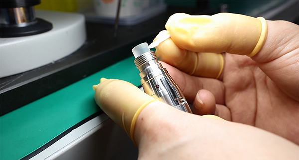 (5)用雙面膠木棒將保護(hù)內(nèi)蓋上的灰塵粘掉,再用棉簽和酒精進(jìn)一步清潔干凈套回連接器上。